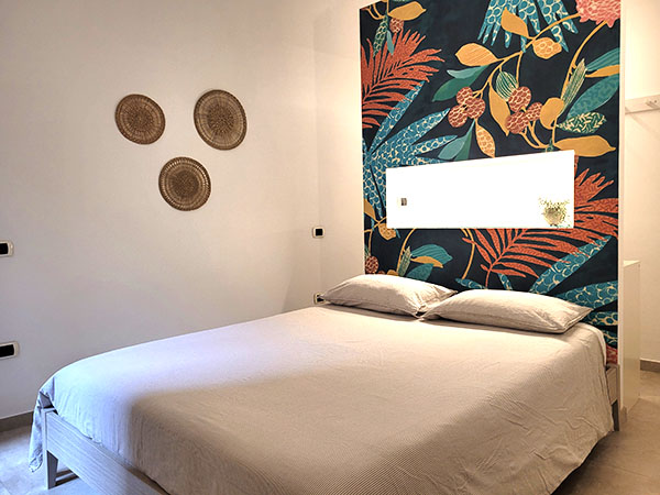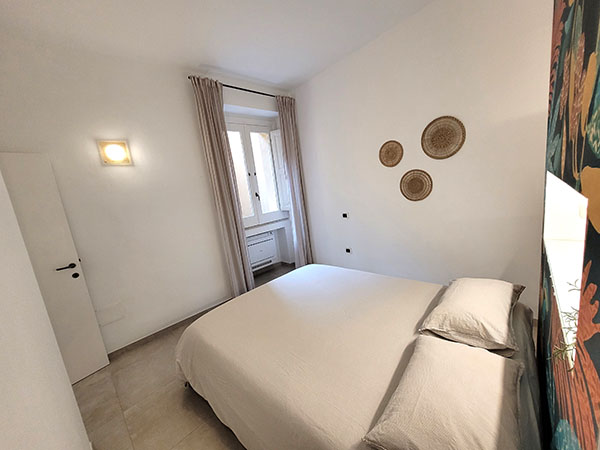 Das Schlafzimmer der Wohnung ist mit einem Doppelbett und einem begehbaren Kleiderschrank ausgestattet. Zudem ist es klimatisiert.