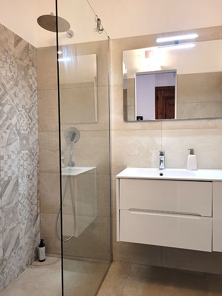 Im modernen Badezimmer sind eine Regendusche, WC und eine geräumige Kommode untergebracht. Auch einen Haartrockner werden Sie hier vorfinden.